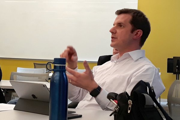 Workshop participants took turns practicing essential skills for effective interviews including being prepared to convey three main points early and often and being ready to “turn questions” to make your point.